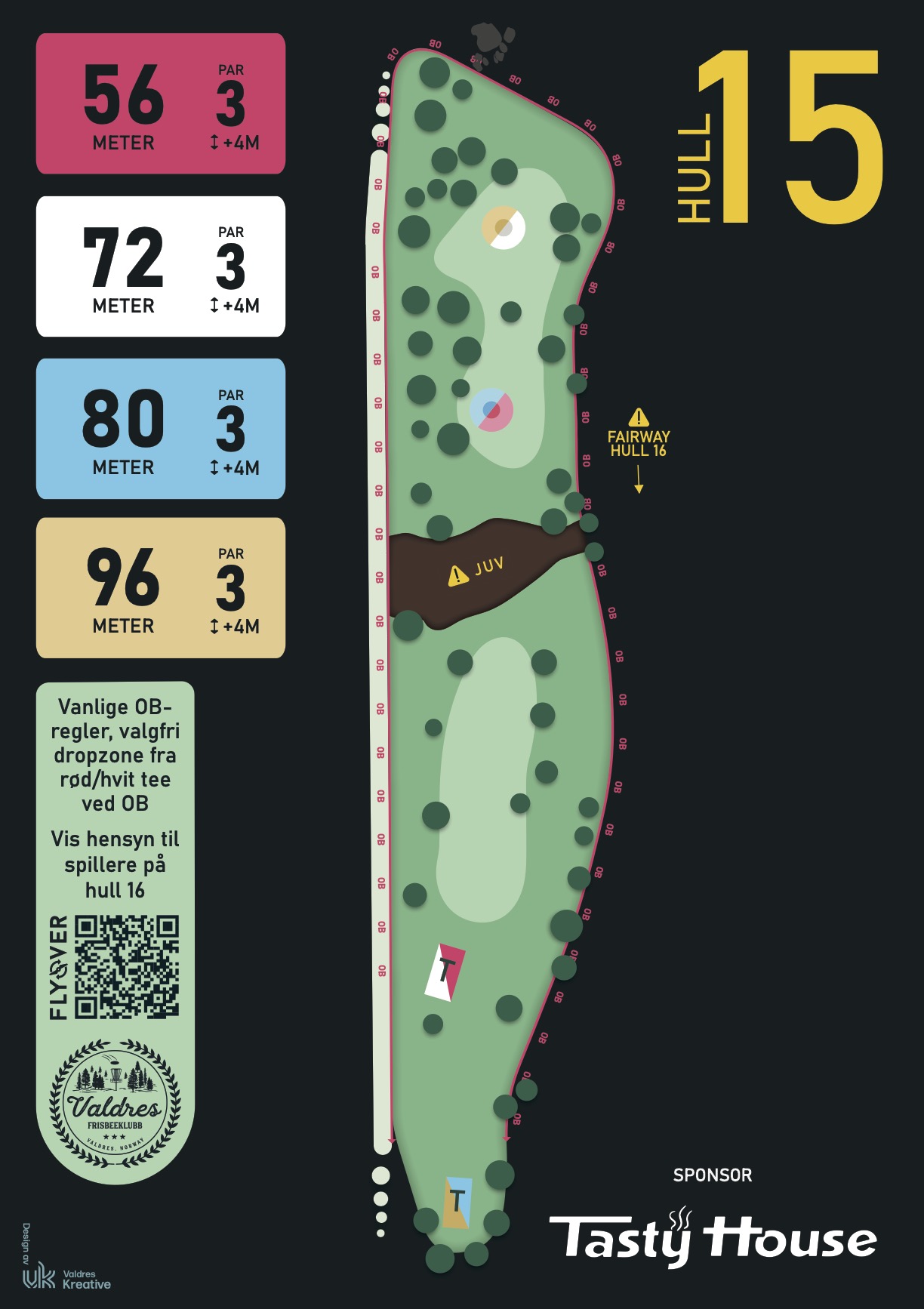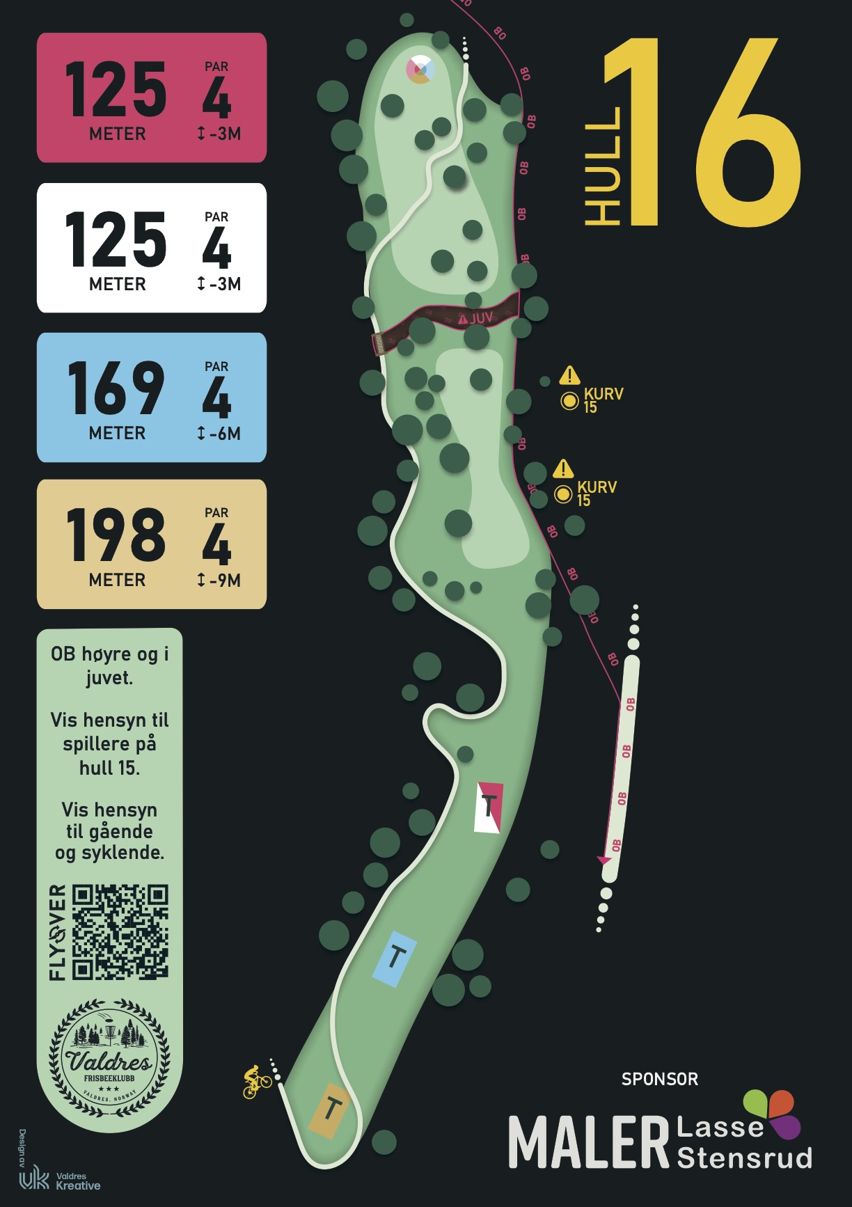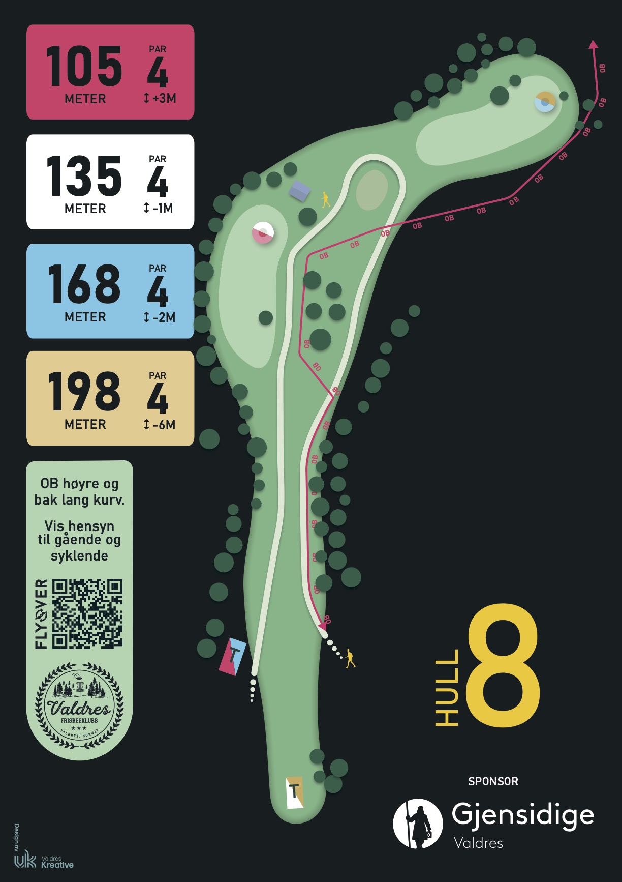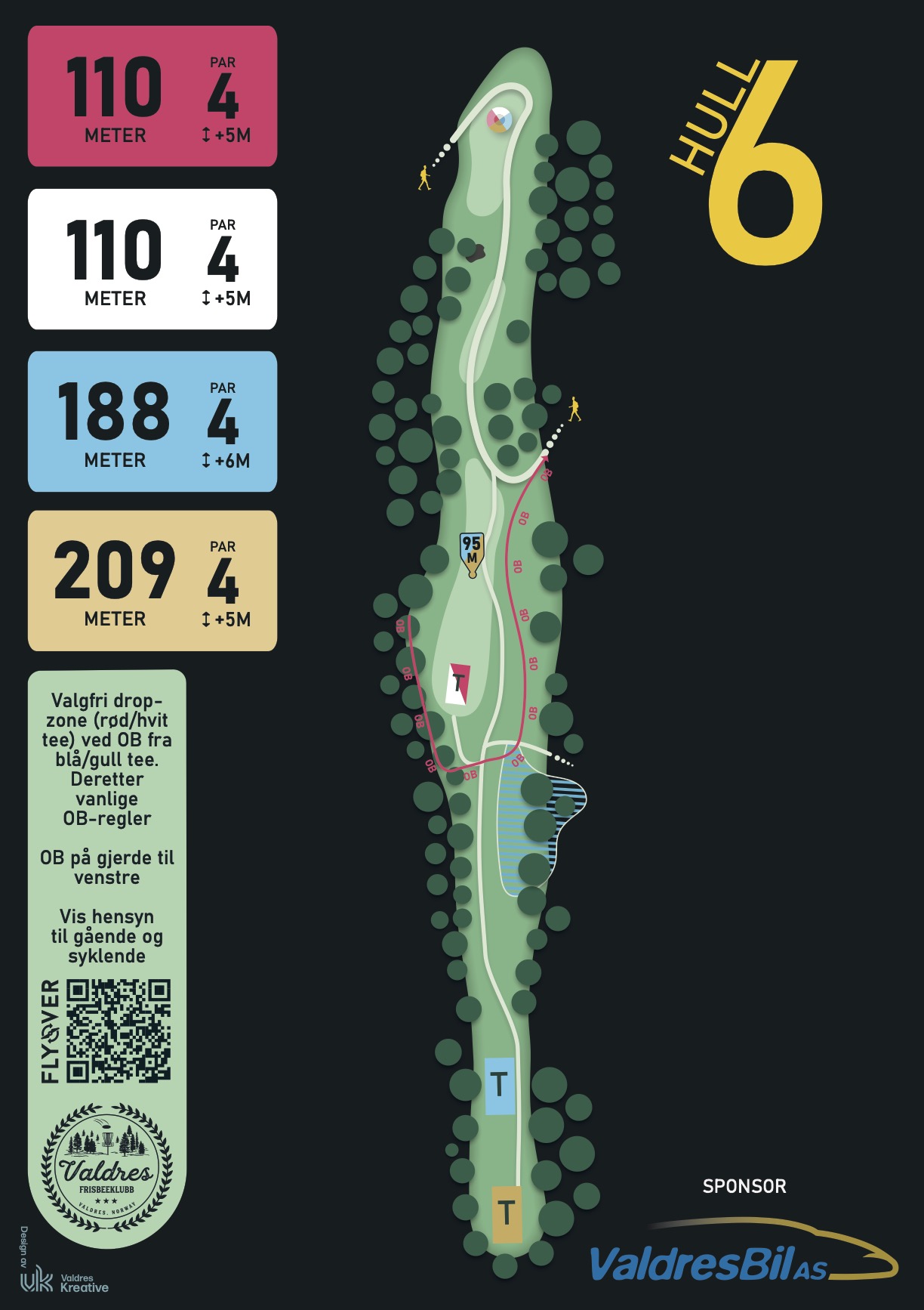 OB langs vei på høyre side og mellom hull 13 og 14 på venstre side. Helt nytt hull langs Fløafjordvegen.
